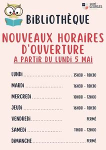 La bibliothèque municipale de Saint-Georges-les-Bains est un espace culturel accessible à tous, proposant une large sélection d’ouvrages pour petits et grands, ainsi qu’un accès gratuit à Internet pour la recherche documentaire.