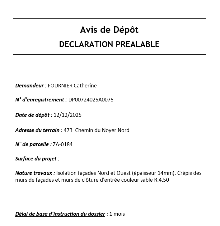 Avis de dépôt DP 007 240 25 A 0075 – FOURNIER