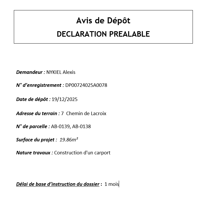Avis de dépôt DP 007 240 25 A 0078