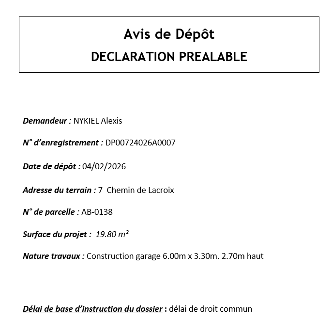Avis de dépôt DP 007 240 26 A 0007