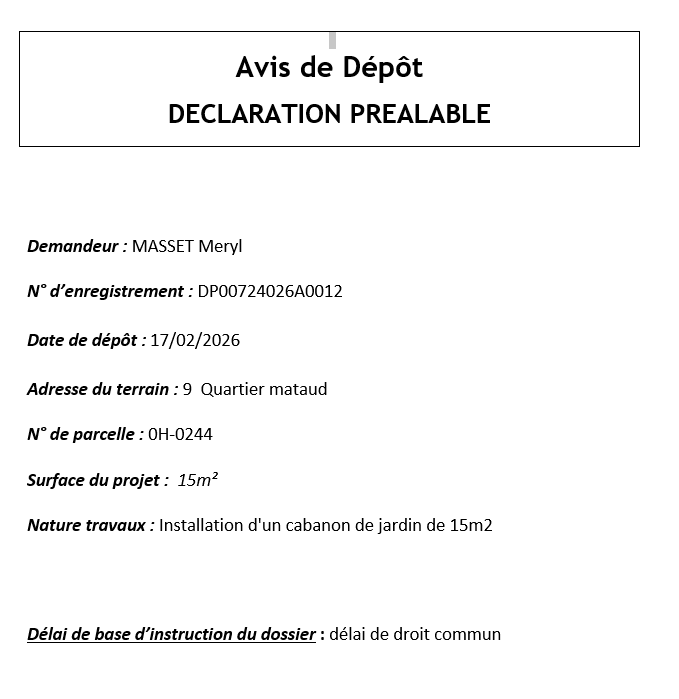 Avis de dépôt DP 007 240 26 A 0012