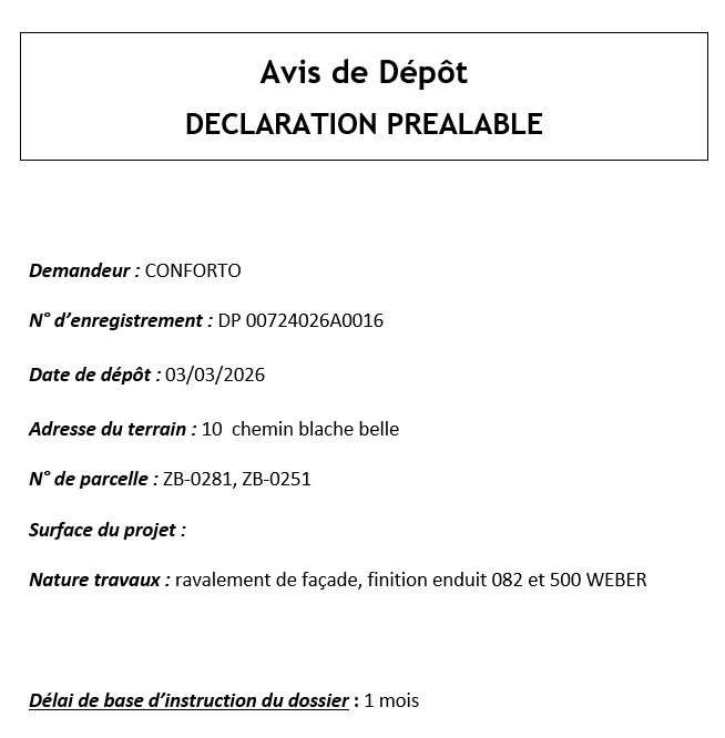 Avis de dépôt DP 007 240 26 A 0016
