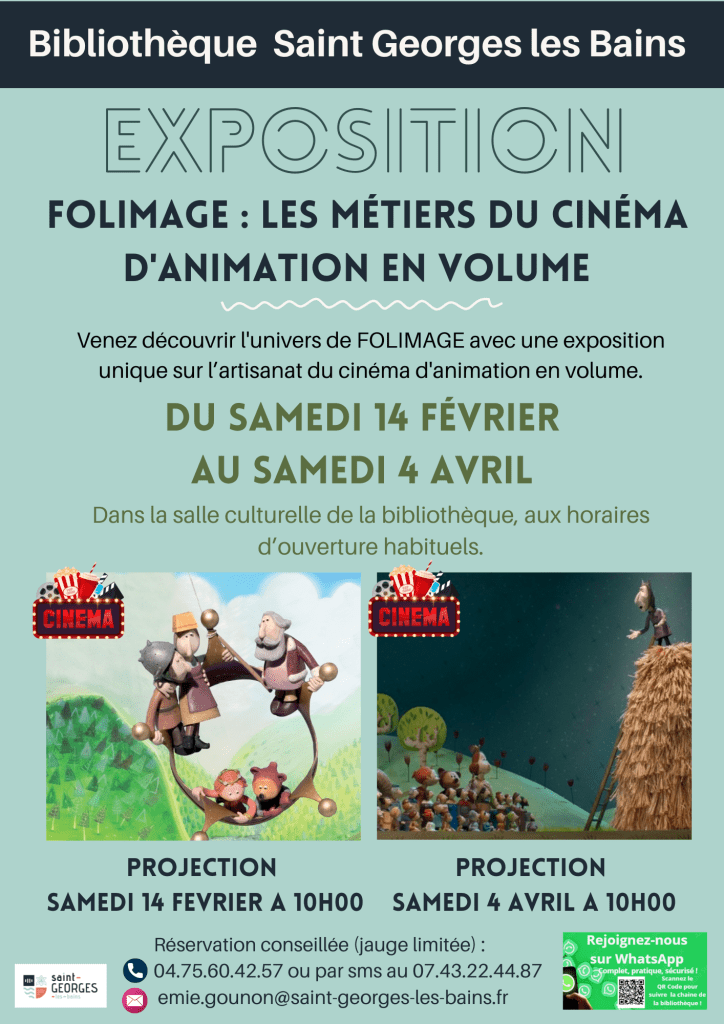 Du 14 février au 4 avril 2026 la bibliothèque de Saint-Georges-les-Bains est fière d’accueillir l’exposition « FOLIMAGE : Les métiers du cinéma d’animation en volume », une invitation à explorer les savoir-faire exceptionnels du studio Folimage, basé à Valence (Drôme).